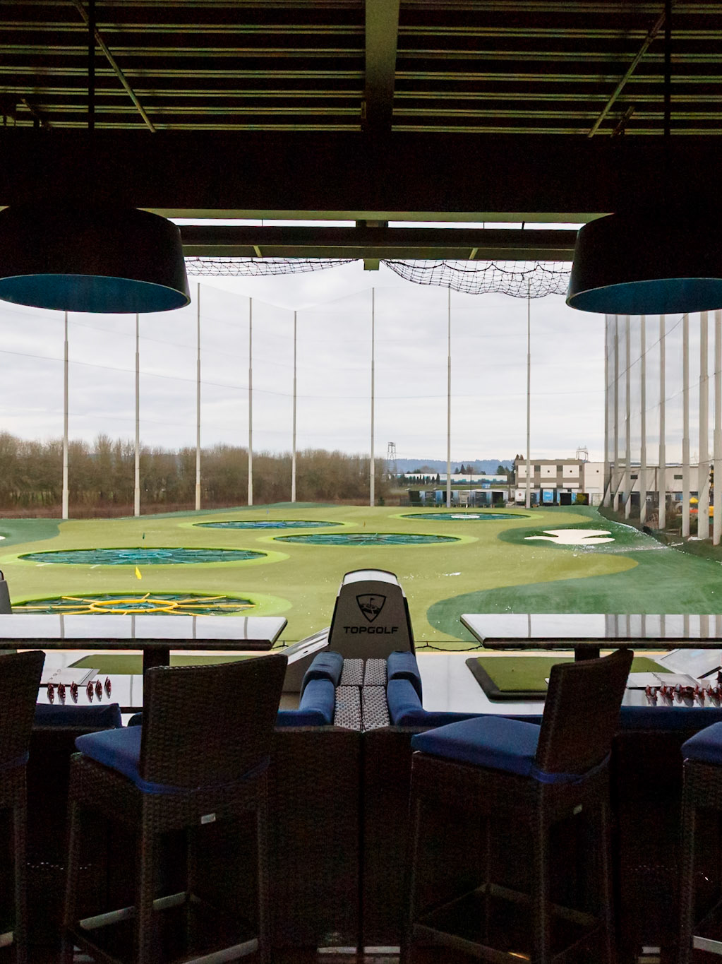 Fog Lark, Portland, Oregon - April 6th 2018: A culinary space is set for a meal, with chefs preparing food in the background.
